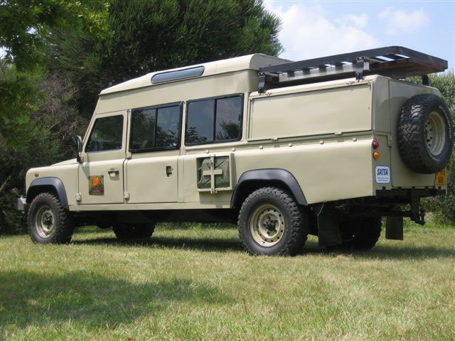 Another fine example of a Land Rover Td5 conversion. Extended chassis to 150″. This particular vehicle is build by Safaribus and also used by Endeavour Safaris in Botswana. Parts used are extended rear tub (1969 South African Army) and a series 3 roof panel. Paint job is a Toyota Land Cruiser shade!